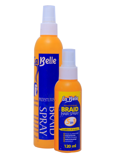 Prevents dry itchy scalp for braids and naturalhair. Moisturizes,conditionsand prevents hair breakage. Adds an extra shine and sheen to natural or synthetic hair. La Belle braid spray is specially formulated to provide anti dandruff protection while softening hair. Controls itching and flaking associated with scalp.