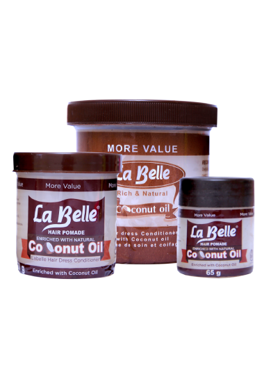 La Belle rich and natural with coconut oil replenishes oil to hair damaged by relaxing or colouring process. It contains Beeswax that moisturizes and smoothes down hair and also promotes hair growth. It is a natural dress hair conditioner and great for the entire family. Regular use leaves the hair shinny and healthy looking.